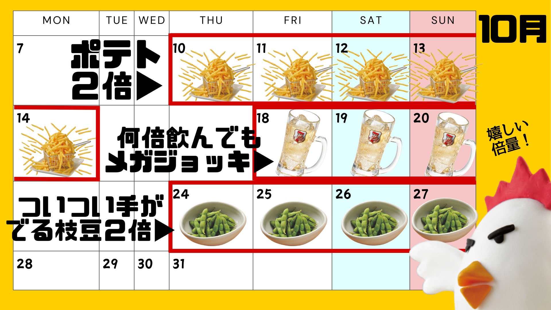 ありがとう20周年!第2弾!お値段そのまま増量キャンペーンを10月10日(木)から開催!期間ごとに変わる増量メニューで満足度も2倍!?