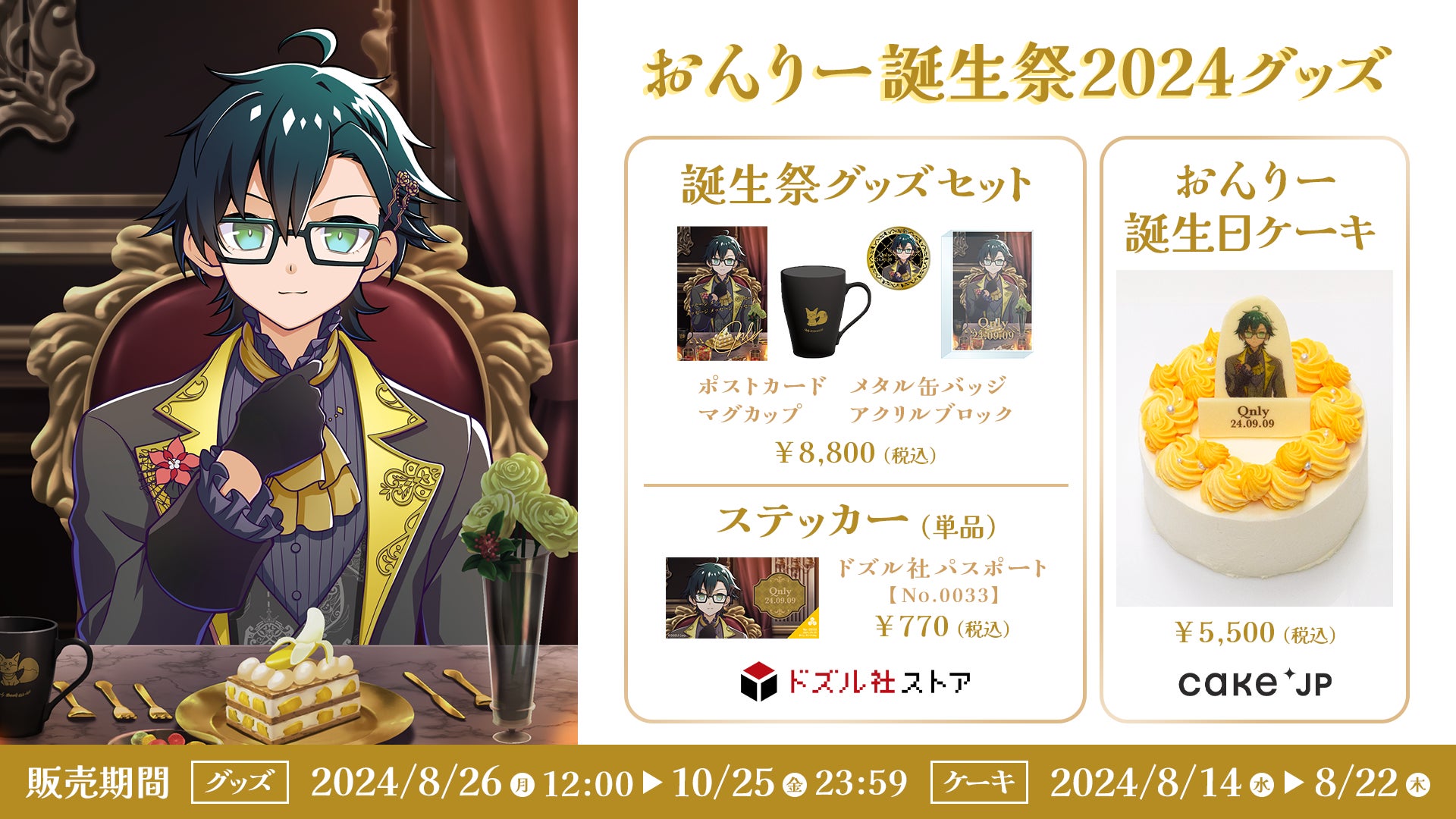 9月9日に誕生日を迎えるおんりーをお祝いする記念グッズとして、新たに描き下ろした『おんりー誕生祭2024』ビジュアルを使用したスペシャルグッズやドズル社パスポート用のステッカーを発売します。