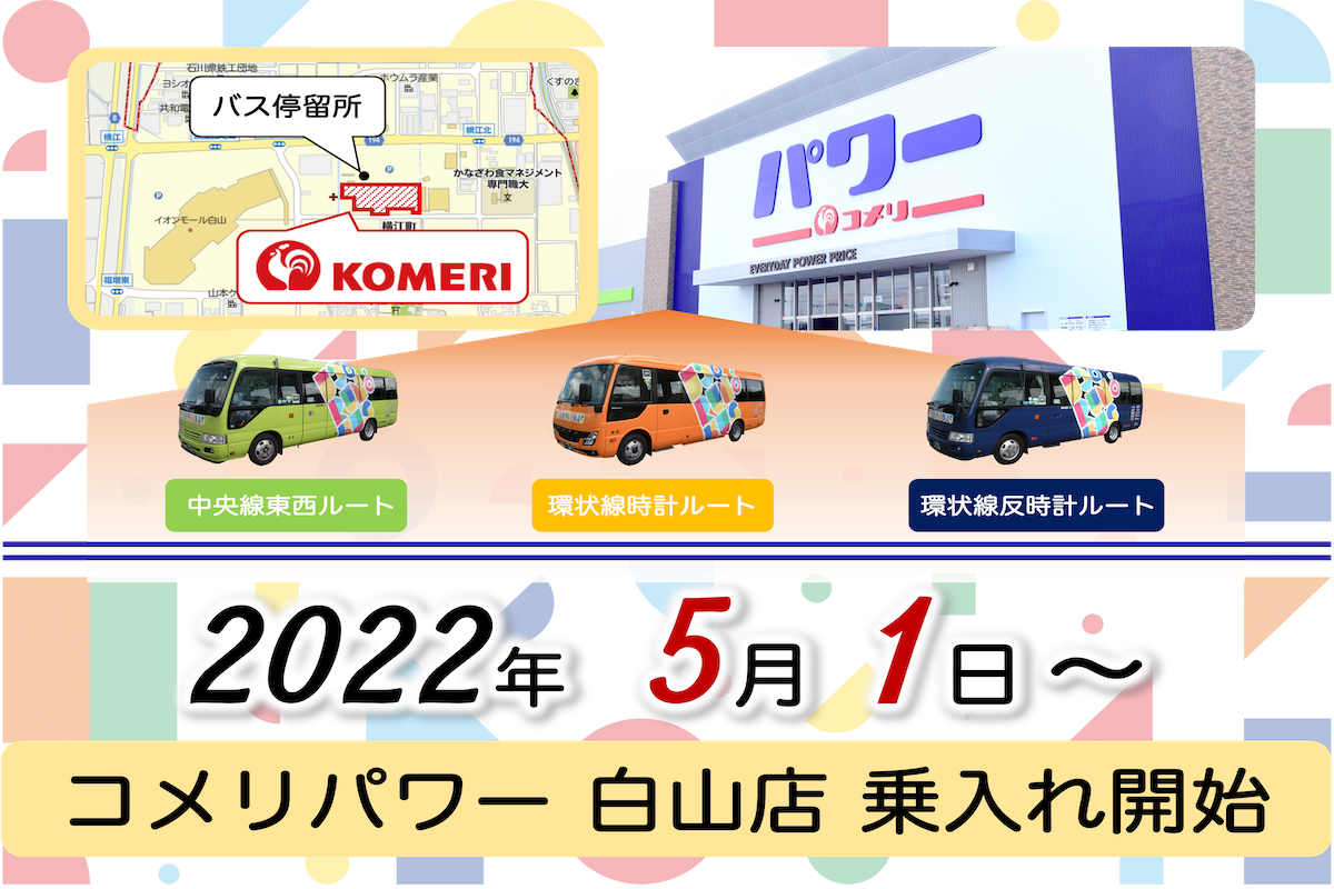 お買い物手段の利便性の向上!コメリパワー白山店敷地内に「無料巡回バス停留所」を設置!