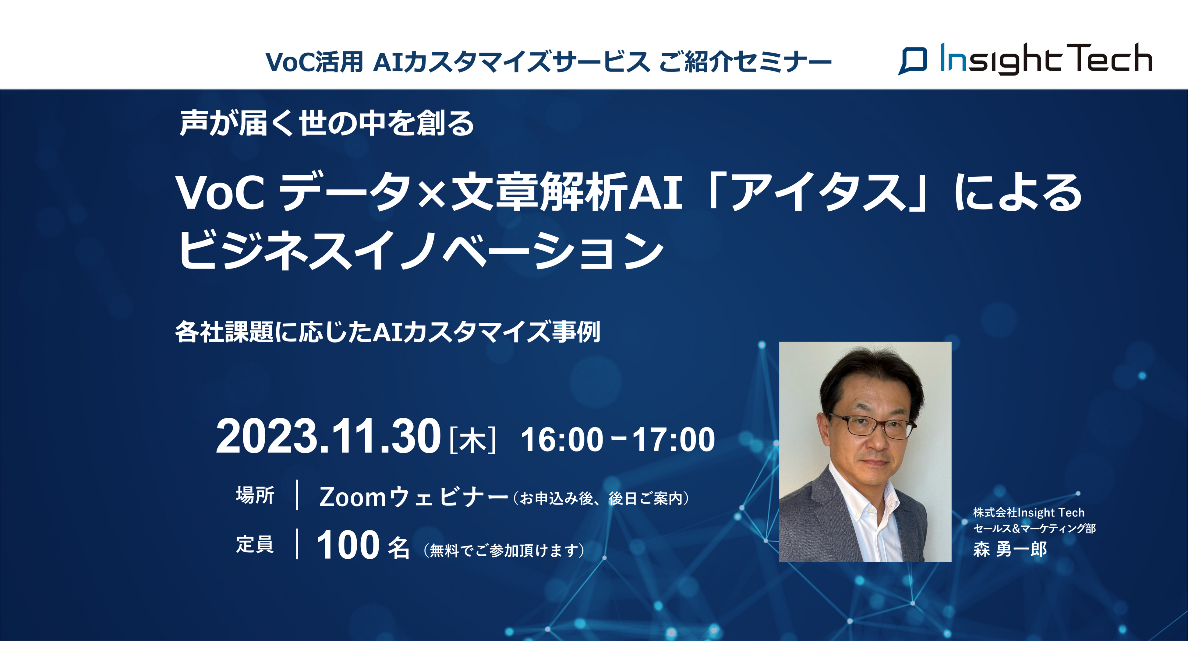 株式会社Insight Techが「各社経営課題に応じたAIカスタマイズ開発事例」を紹介するWebセミナーを開催