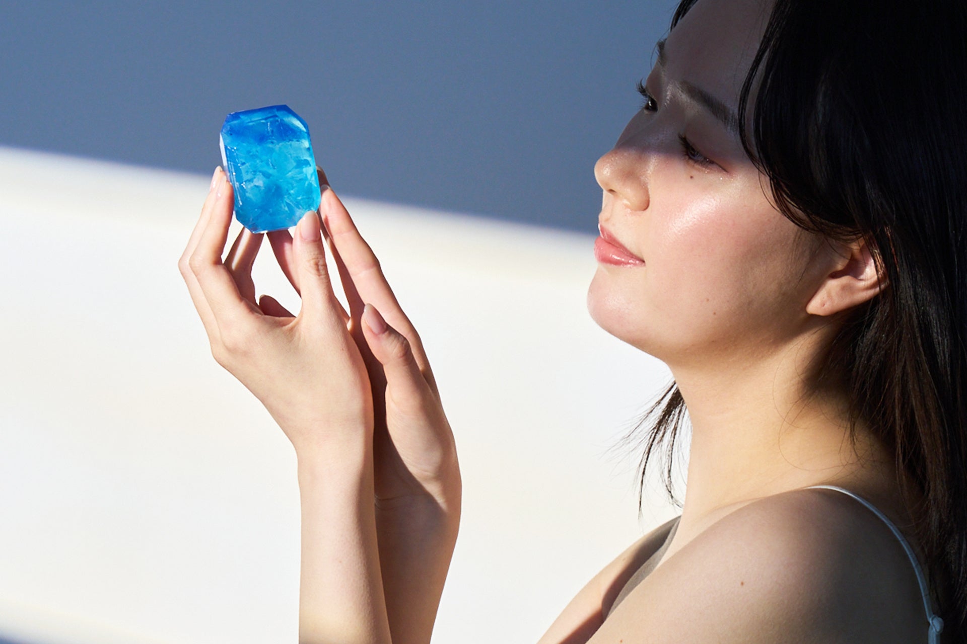 水面の反射のような透明感を表現しました。みずみずしいアクアブルーに、繊細なオーロラの輝きが重なるカラーです。