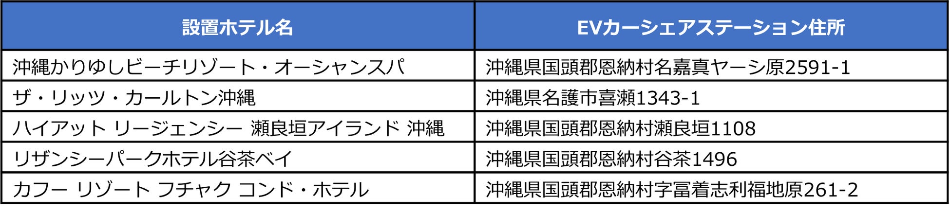 株式会社OTSサービス経営研究所(本社:沖縄県那覇市、代表取締役社長 山田真久、以下、OTSサービス経営研究所)は、NTTビジネスソリューションズ株式会社(本社:大阪府大阪市、代表取締役社長 木上秀則、以下、NTTビジネスソリューションズ)が提供する電気自動車(以下、EV)導入運用支援ソリューション「N.mobi(エヌモビ)」(以下、N.mobi)を活用し、2025年3月より、沖縄県恩納村エリア(以下、恩納村エリア)のリゾートホテル(以下、ホテル)でEVカーシェアリングを開始しました。