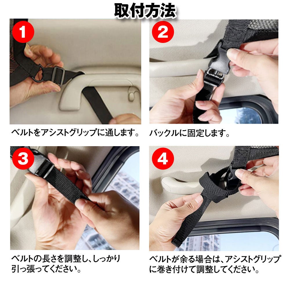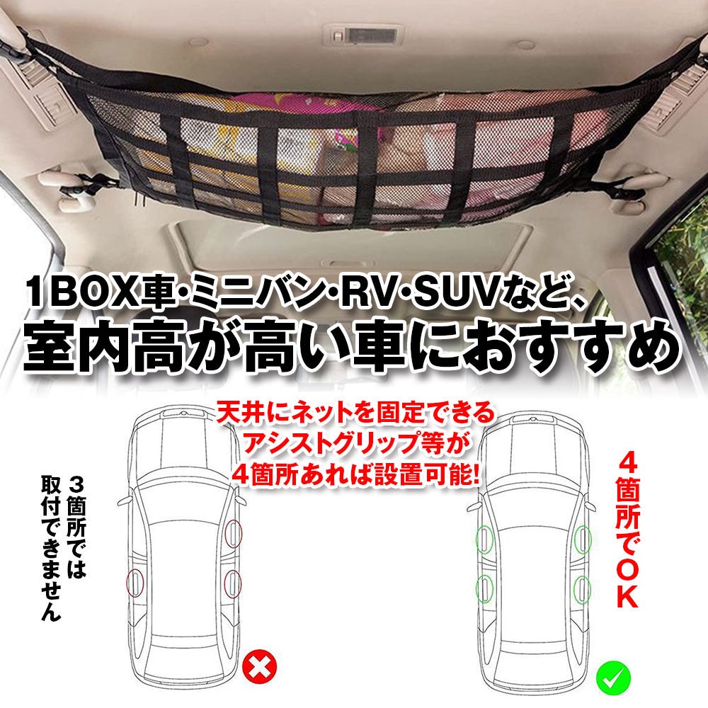 天井にネットを固定できるアシストグリップ等が4か所あれば設置できます。