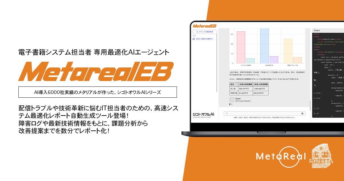 【メタリアル・グループ】電子書籍配信システム最適化レポート作成AIエージェント「Metareal イーブック(Metareal EB)」6/10提供開始
