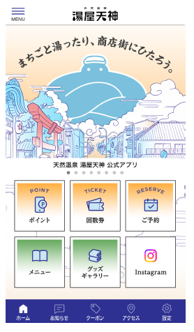施設を利用して貯めたポイントで割引やクーポンが受け取れる公式アプリをリリースします!来館やご利用でポイントがどんどん貯まり、割引やクーポンと交換可能。さらに、ポイントを貯めて会員ランクがアップすると、うれしい特典もグレードアップ!アプリ限定のクーポンも続々配信予定です。