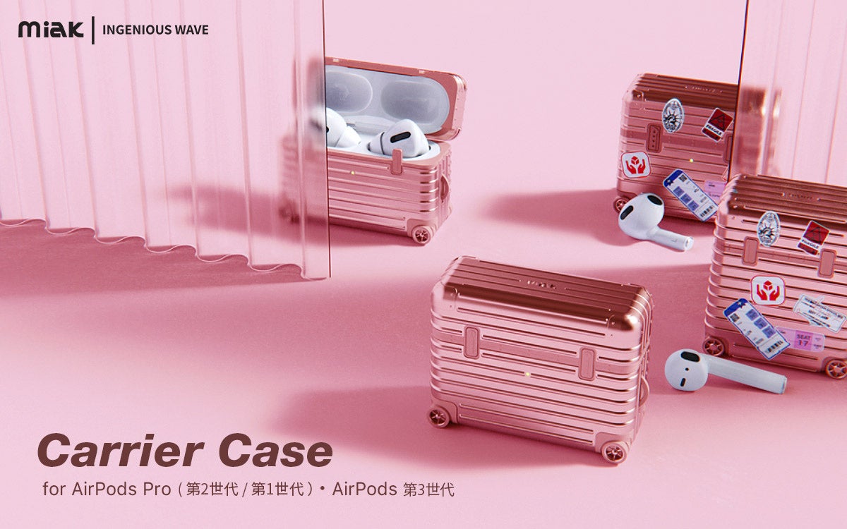 miak、精巧なスーツケース型AirPodsケースに「ピンク」登場