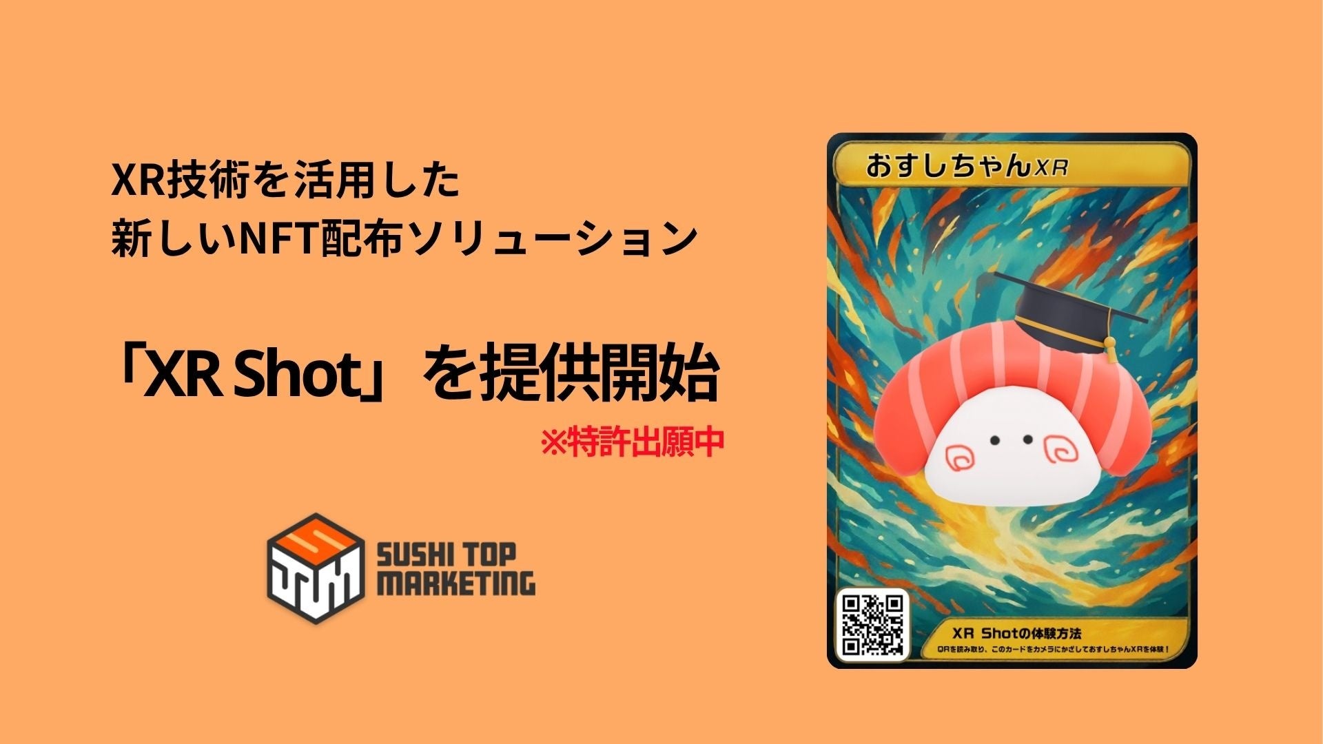 SUSHI TOP MARKETING株式会社(本社:東京都千代田区、代表取締役:徳永 大輔、以下「当社」)は、XR技術およびAR体験を活用した新しいNFT配布ソリューション「XR Shot」および「AR体験サービス」を開始したことをお知らせします。