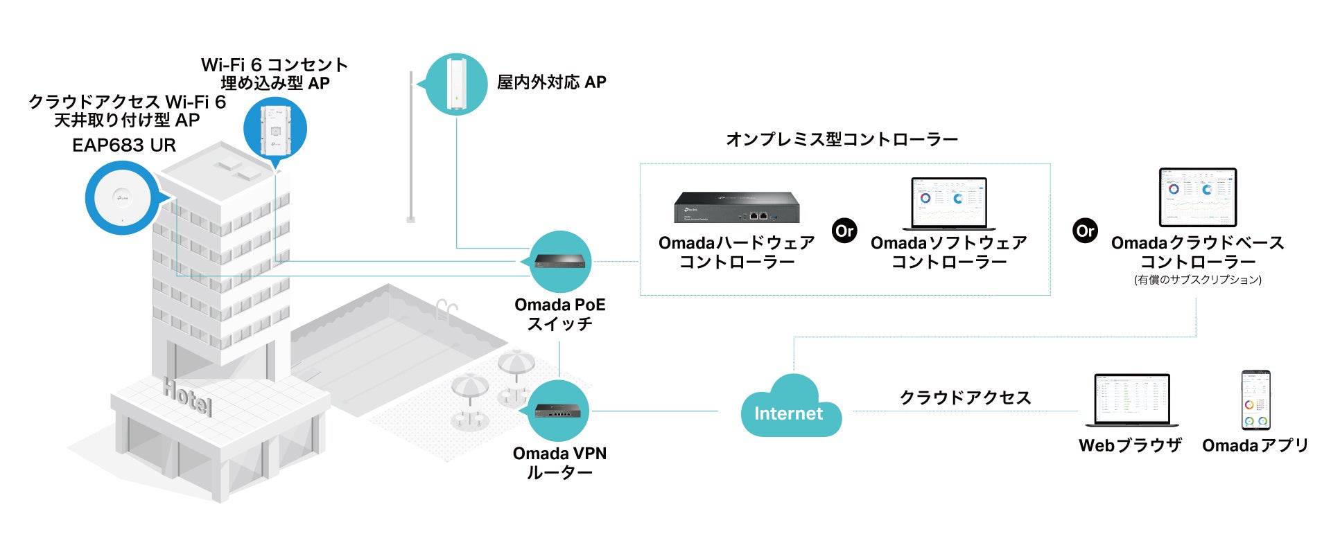 *2: 災害用統一SSID「00000JAPAN」をご利用いただくには、Omadaハードウェアコントローラーと合わせて使用いただく必要がございます。