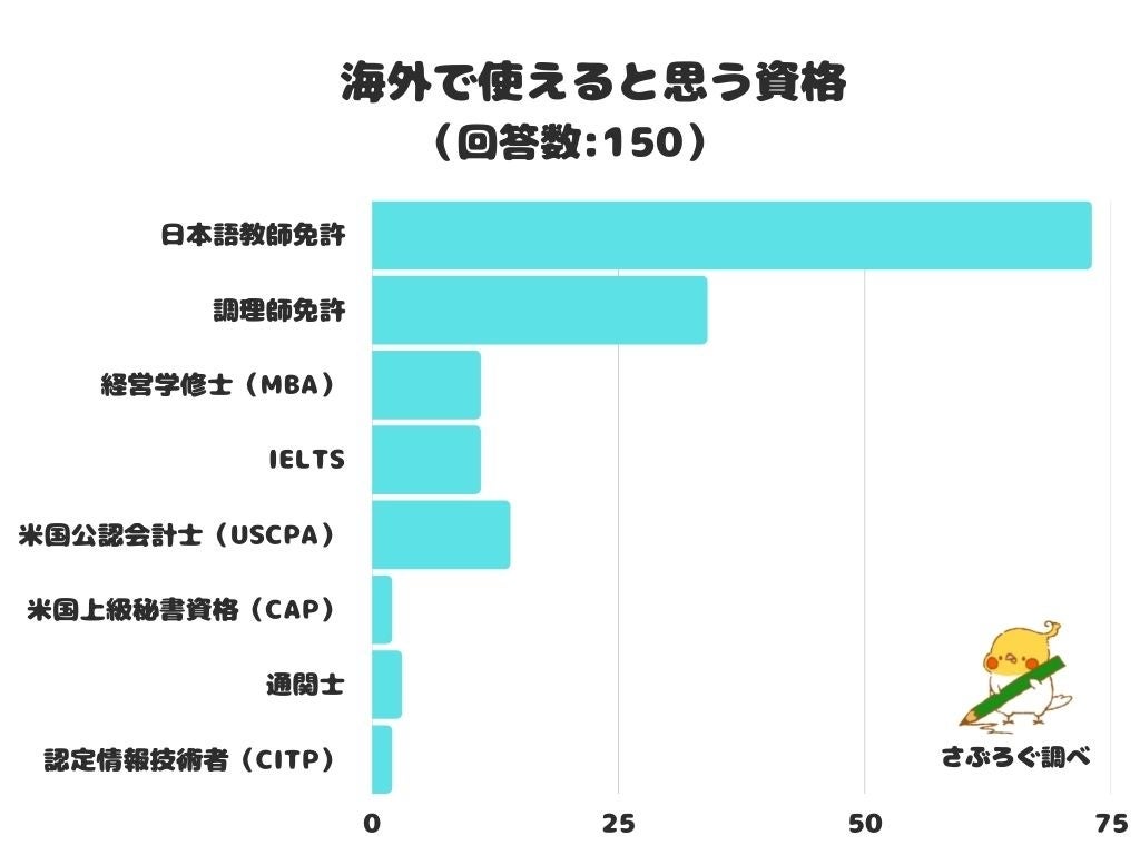 2位は「調理師免許」で、料理が作れたらどの国でも働くことができそうという意見がありました。