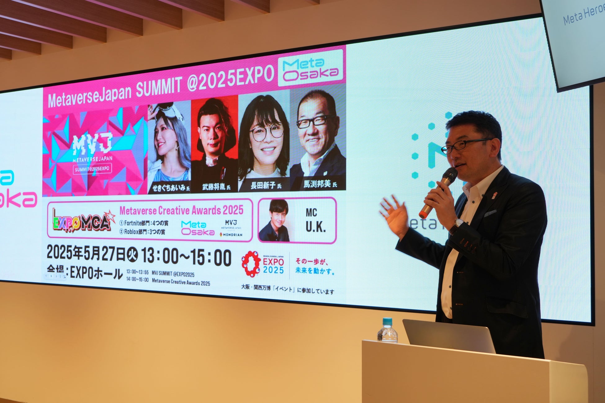 私たちMeta Osakaは『大阪を世界一おもろい都市に』というミッションのもと、デジタル技術を活用した地域課題解決に取り組んでいます。5月27日の『メタバース・XR・AIアワード』では、ALSクリエイターによる視線入力パフォーマンスや、『Metaverse Creative Awards 2025 EXPO』としてFortniteとRobloxのクリエイターをステージ上で表彰します。また自治体と連携したデジタルツインのイベントやこども万博など、全国で展開してきた事例もご紹介します。さらに南海電鉄と共同で推進する『デジタルエンターテインメントシティ構想NAMBA』を通じて、AIやXR技術を活用した次世代の都市体験を創出し、リアルとデジタルが融合した未来型都市の実現を目指しています。これらの取り組みを多くのメディアの皆様に体験いただき、テクノロジーが生み出す新たな価値を広く発信していただければ幸いです。