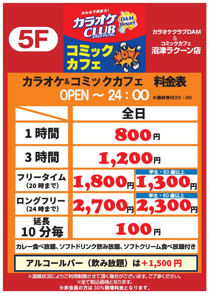 ■「カラオケCLUB DAM 沼津ラクーン店」では