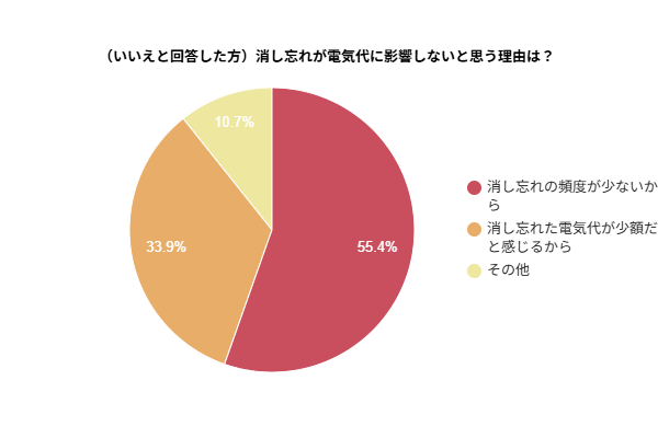 消し忘れが少ないため、電気代に影響していないと考える方は約55%