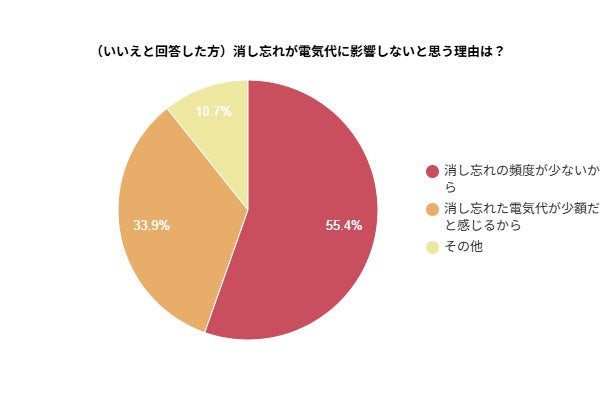 消し忘れが少ないため、電気代に影響していないと考える方が過半数