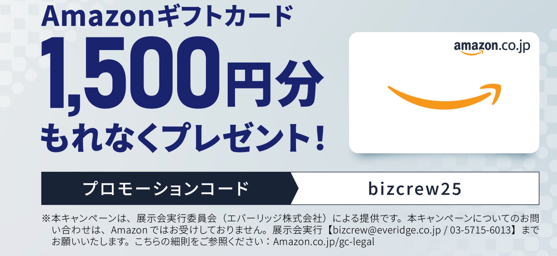 ※Amazonギフトカードは、上記条件をすべて満たしている来場者様を対象に、会期1か月後を目安に事務局よりメールにて進呈いたします。