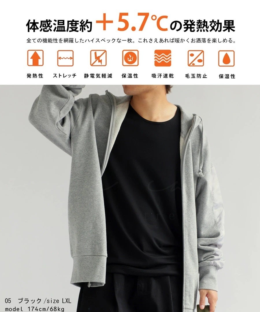 体感温度+5.7°Cの発熱効果?!ユニセックスで着れるオリジナルヒートトップス。