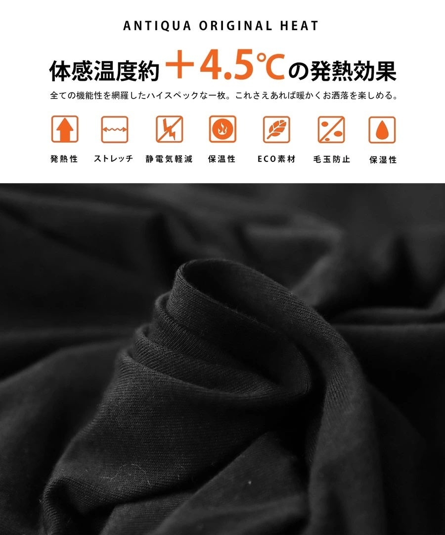 発熱・保温・保湿に優れ体感約+4.5°Cを実現したantiquaオリジナルヒート。