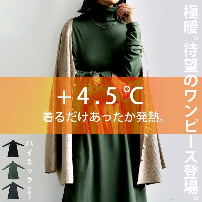 着るだけであったか発熱。+4.5°Cヒートシリーズはワンピースやトップスもご用意。