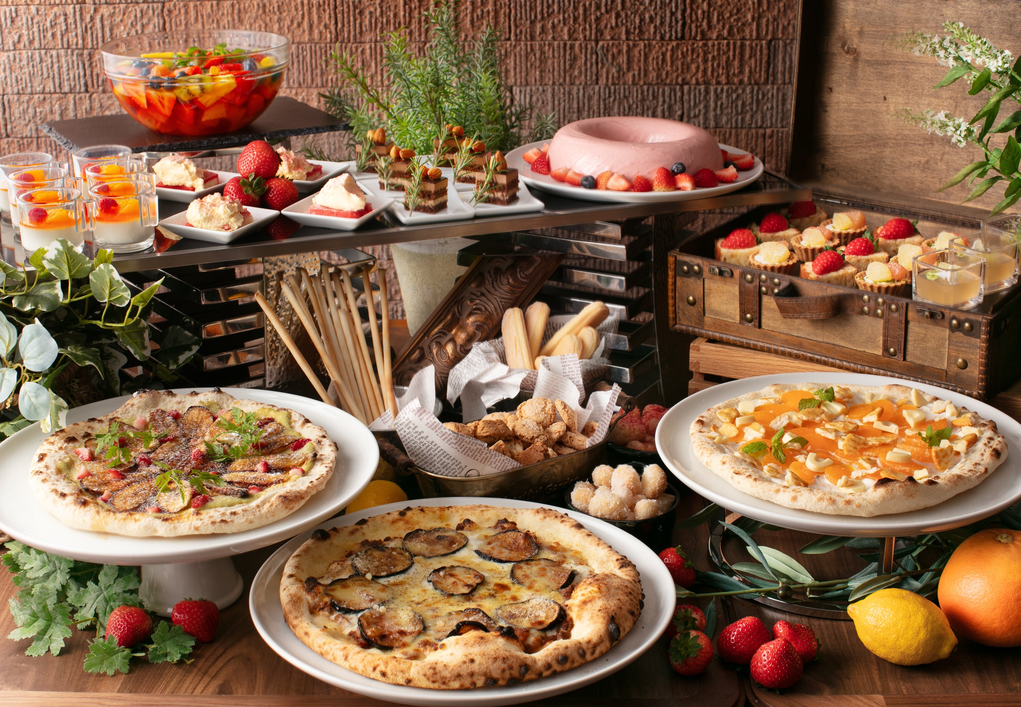 甘酸っぱい香りに包まれる〝ストロベリー&シトラス ドルチェ″。窯で焼き上げるデザートピッツァや本格マルゲリータとともに、イタリアの甘いひとときを。