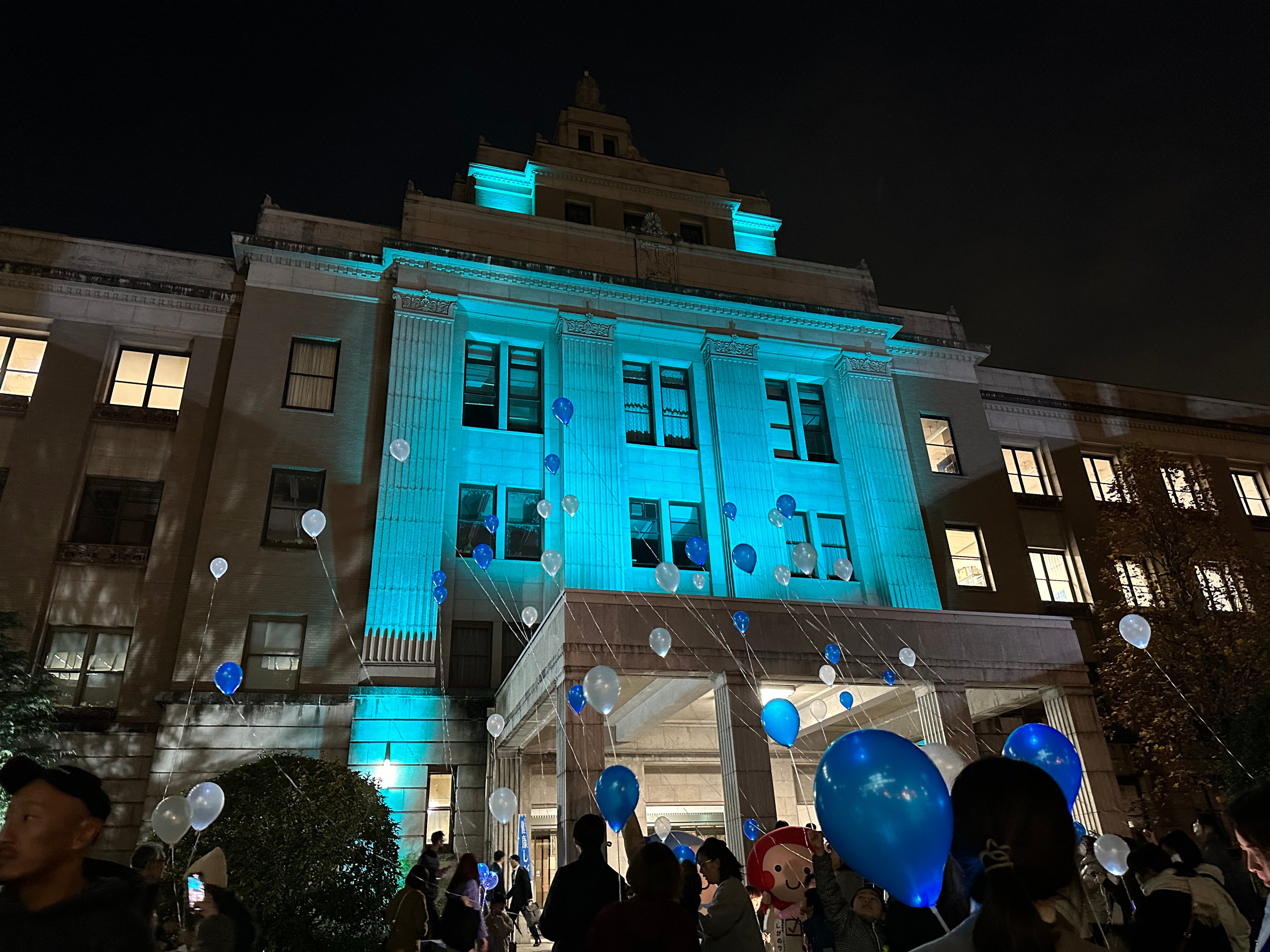 「TEAL BLUE JAPAN in SHIGA」は、「滋賀県」後援のイベントで2023年11月17日(金)17:00〜20:00に、子宮頸がん検診促進のための「滋賀県庁ライトアップ」ならびに「LEDバルーン打ち上げ」イベントを開催し、ゲストには、イベント公式アンバサダーである「2023ミス・アース・ジャパン滋賀ファイナリスト」の7名や滋賀県健康づくりキャラクターの「しがのハグ&クミ」も遊びにきました。
