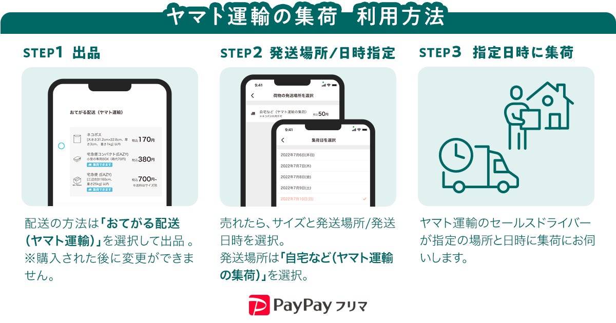 ヤフー株式会社(以下、Yahoo! JAPAN)が運営するフリマアプリ「PayPayフリマ」は本日より、「おてがる配送(ヤマト運輸)」にて集荷を利用できるサービスを順次開始します。(※1)これにより、ユーザーは「PayPayフリマ」で購入された商品を自宅など希望の場所から発送可能になります。