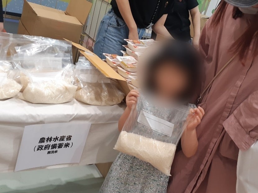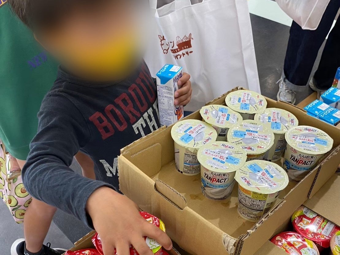 お渡しするものは、お米・サラダ油・醤油・ツナ缶・ふりかけ・スパゲッティ・マヨネーズ・お菓子などの食材、また洗剤・ラップ・シャンプーなどの日用品です。