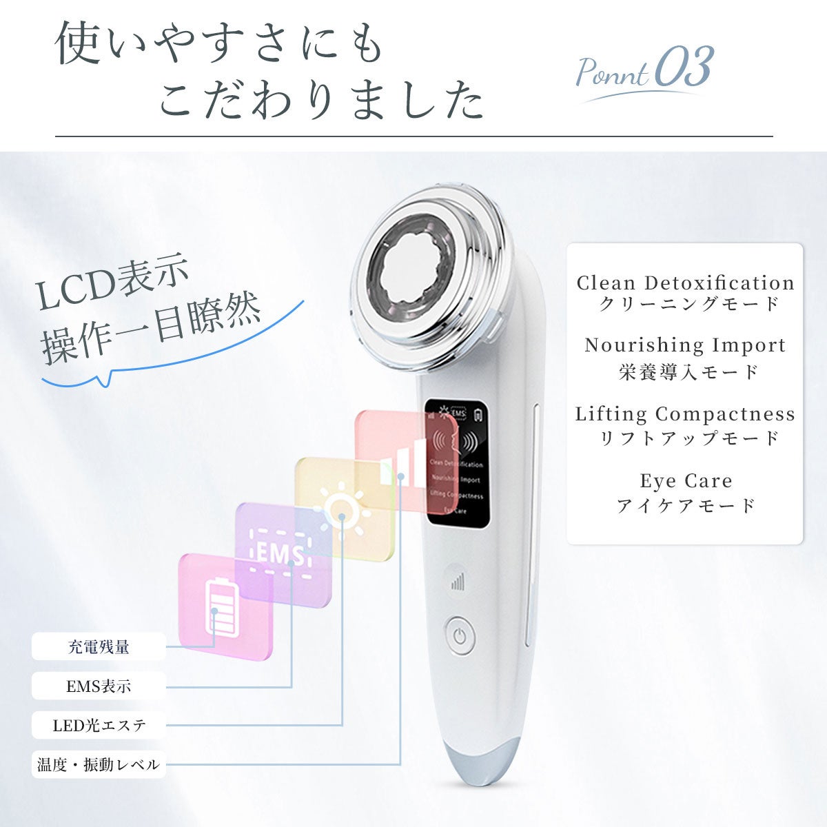 - POINT 2:本格エステ4種類モード