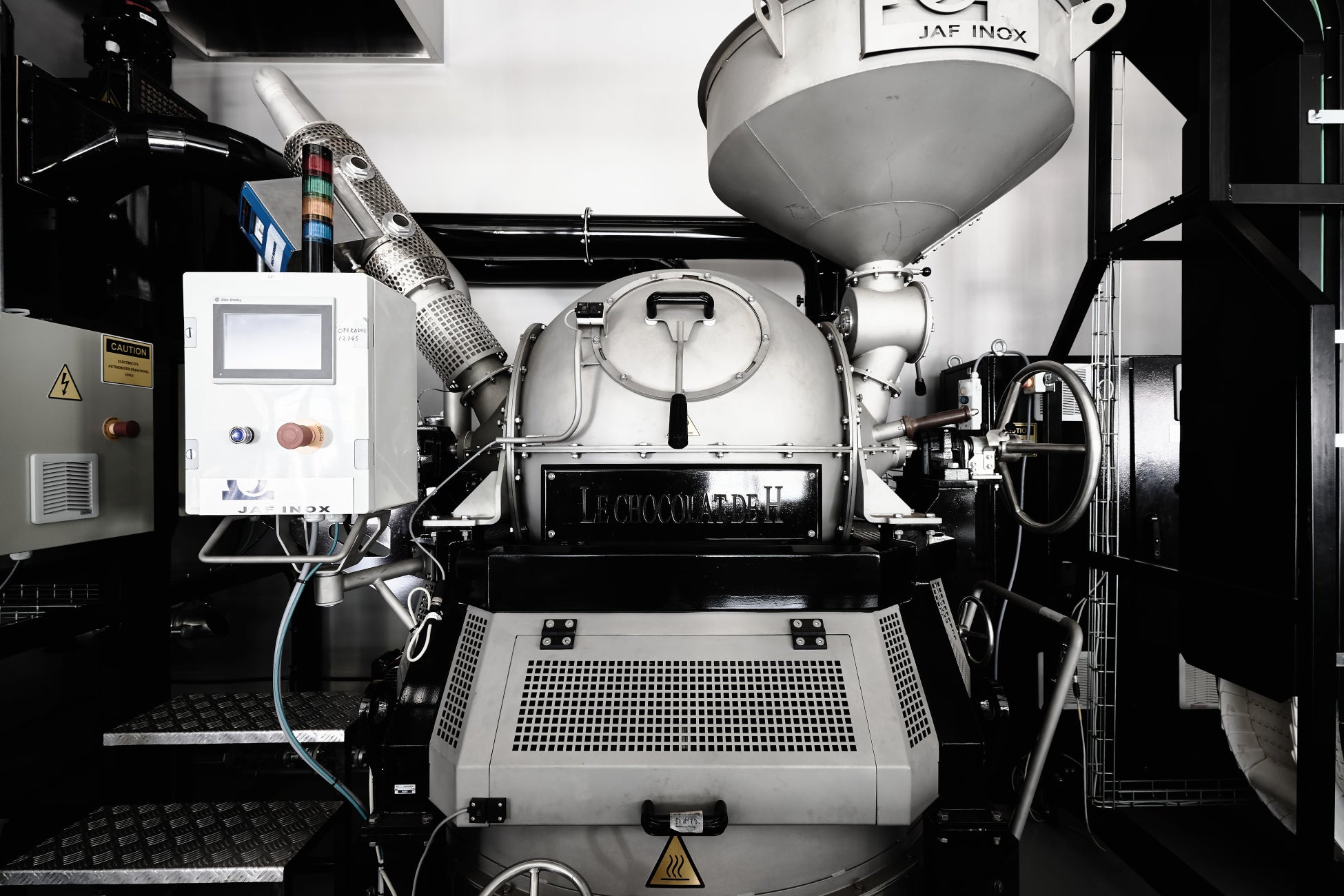 専用に開発した焙煎機を使用し、カカオ豆の特徴に合わせ職人たちが細かく調整。