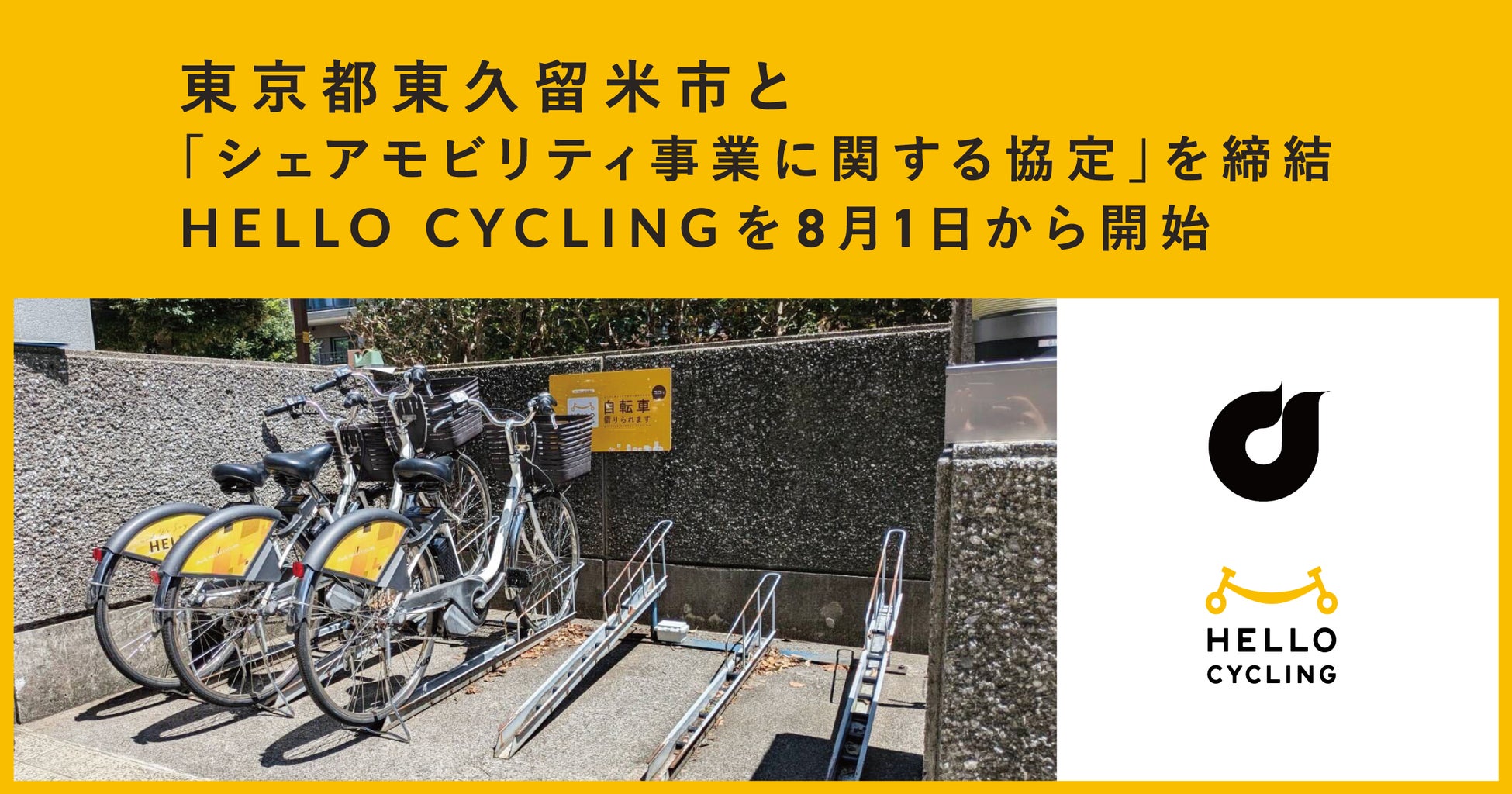 東京都東久留米市と「シェアモビリティ事業に関する協定」を締結し、シェアサイクル「HELLO CYCLING」を8月1日から開始