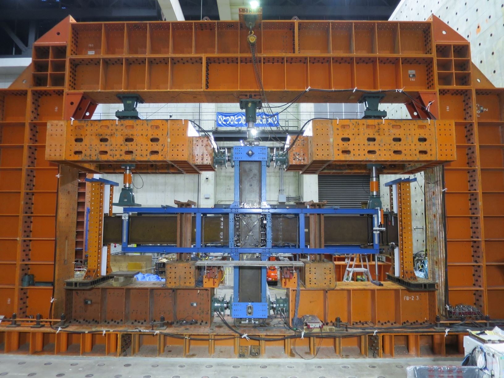 本工法による鉄骨梁端接合部の構造性能を確認するために、柱梁接合部を模した部分骨組で構造実験を行いました。実験の結果、ジベルの補強により得られる耐力上昇効果を確認することができました。また、一般的に工場溶接で製作されるノンスカラップ鉄骨梁端接合部と同等の変形性能を有することも確認しました。