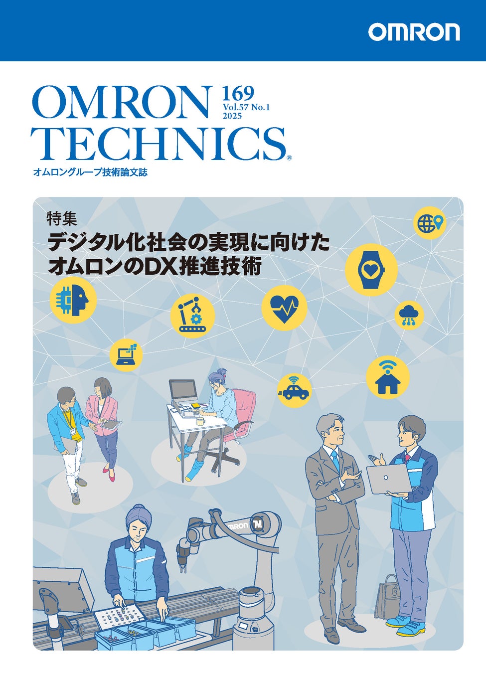 最新号(2025年169号)では、「デジタル化社会の実現に向けたオムロンのDX推進技術」と題し、モノづくり現場における生産性向上を実現するために、オムロングループとして貢献するデジタル技術成果を特集しています。
