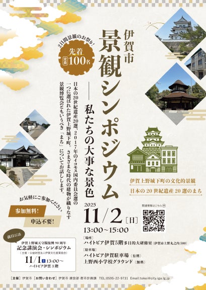 景観法が制定されて20年余りが経過し、現在多くの地方公共団体で、景観形成の取り組みが進められています。伊賀市では城下町としての伝統と風格のある景観まちづくりを、みなさんとともに考えていきます。