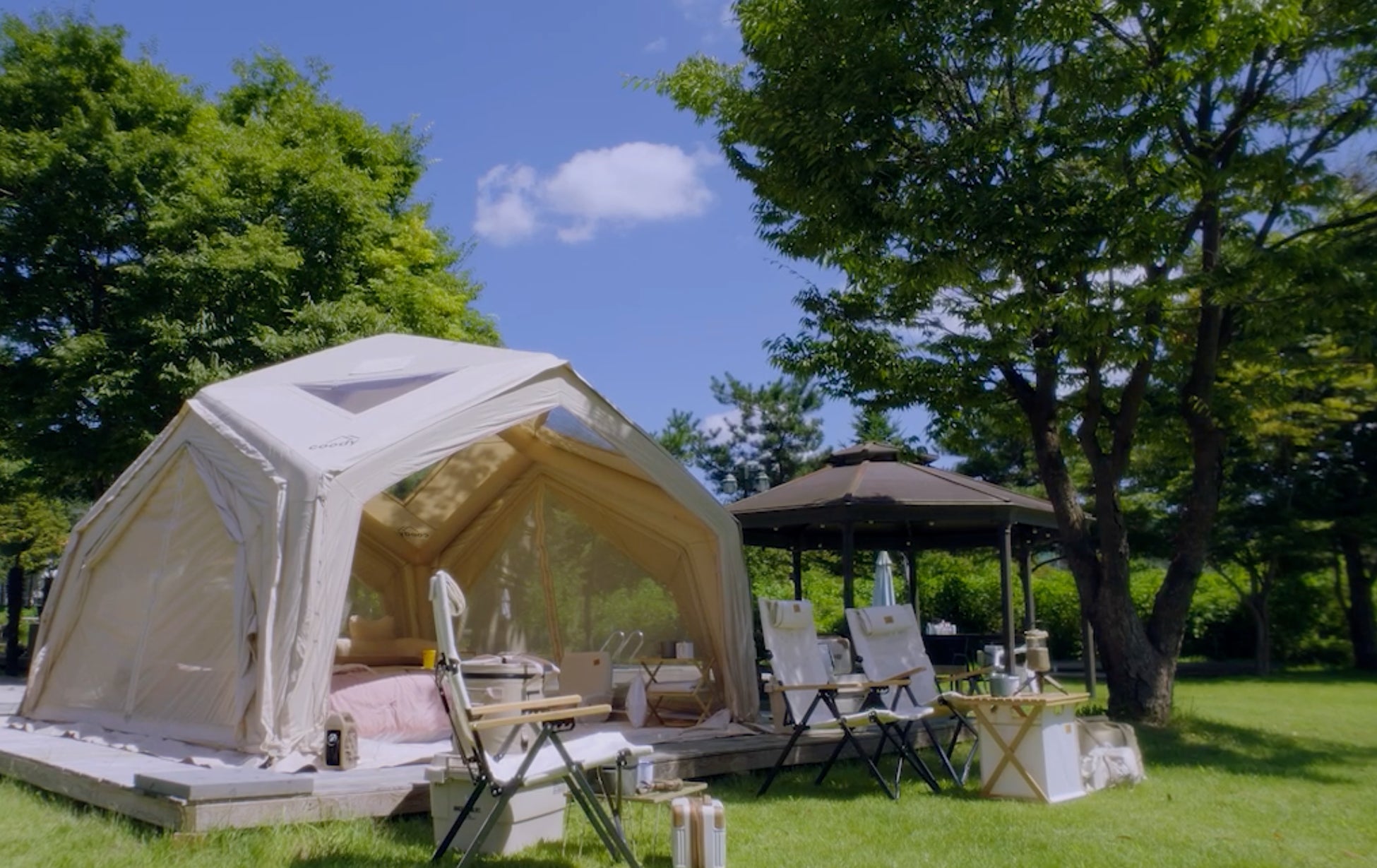 グランピングエアテントのcoodyが日本法人を設立、エアテントのメディア向け無料レンタルサービスを開始