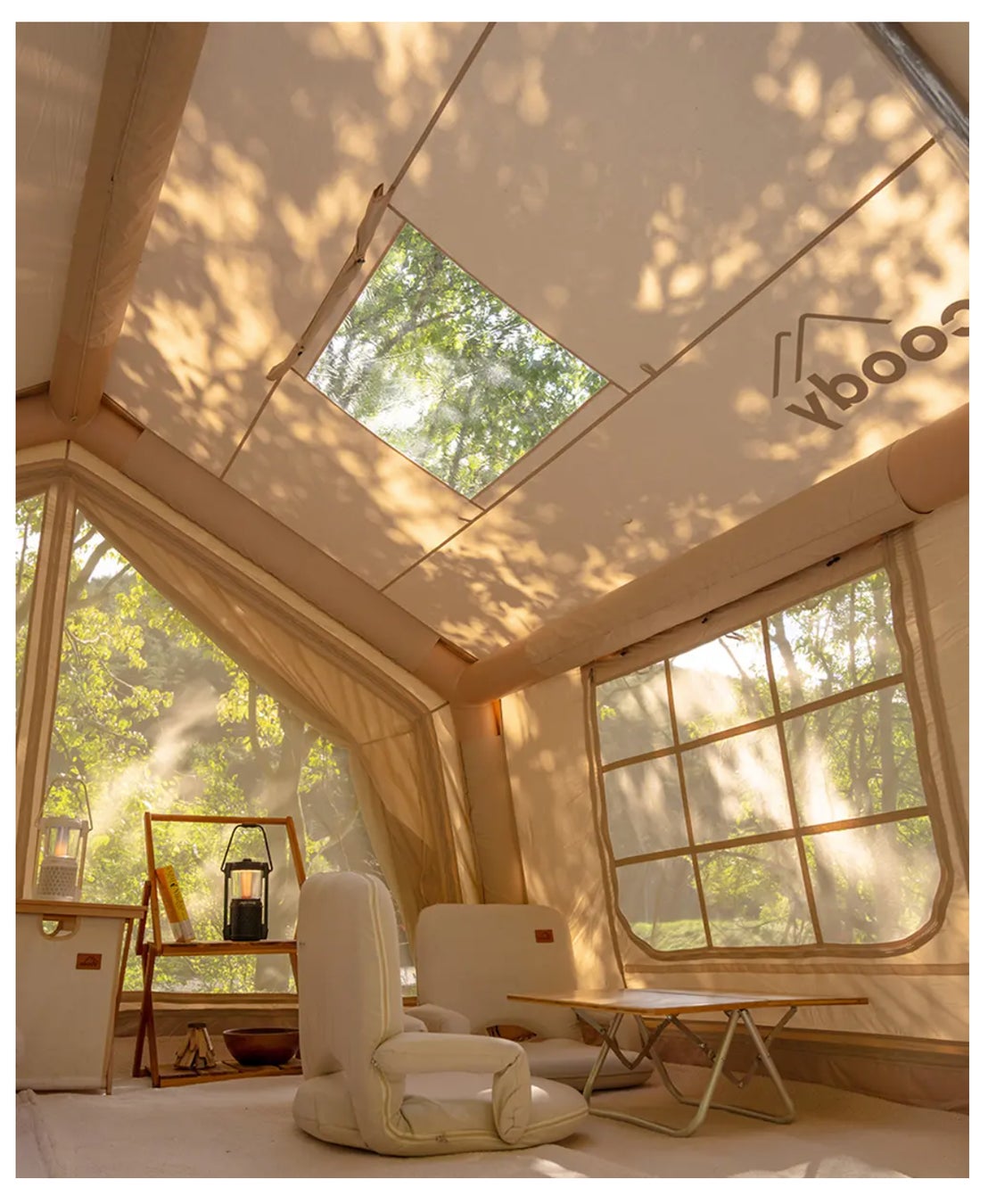 ・coody エアテント 13.6:開放的なレイアウトが可能な、大型テント。