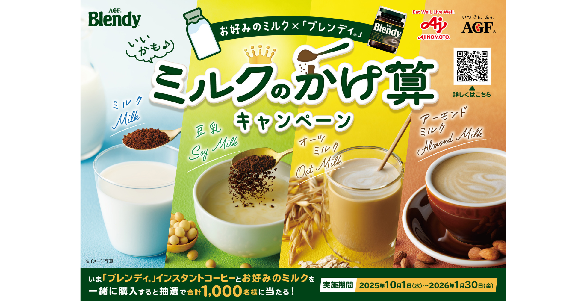 味の素AGF株式会社(代表取締役社長:島本 憲仁 以下、味の素AGF)は、《「ブレンディ®︎」インスタントコーヒー》の新たな提案として《「ブレンディ®」ミルクのかけ算キャンペーン》を2025年10月1日(水)から2026年1月30日(金)まで実施します。
