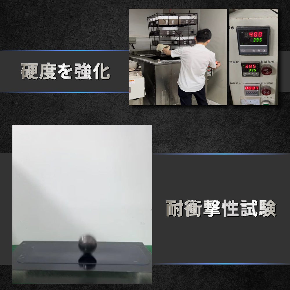 当社のガラスフィルムは400℃で2度加熱し、1枚あたり4時間もの長い時間をかけ強化しています。
