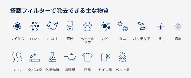 <花粉やダニなどはもちろん、ウイルスレベルの微粒子や花粉、カビまで除去する高いフィルター性能>