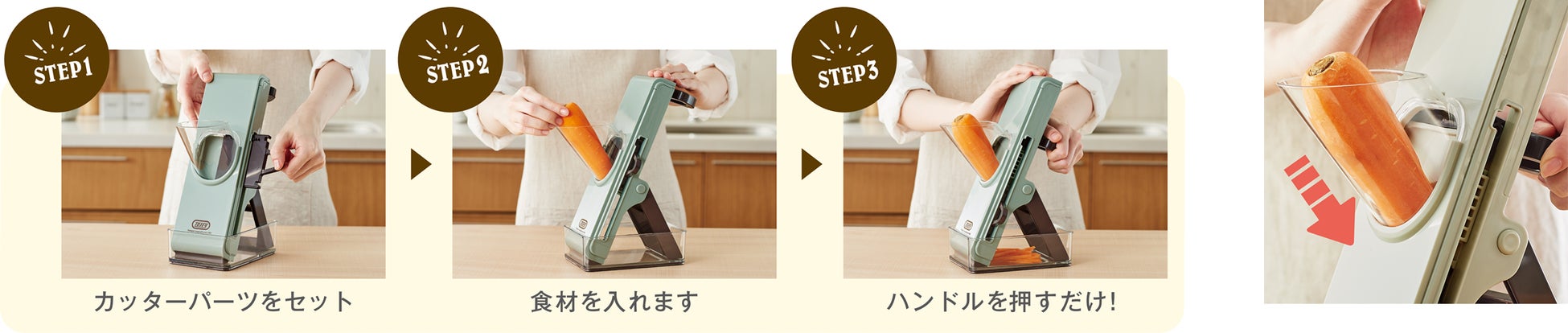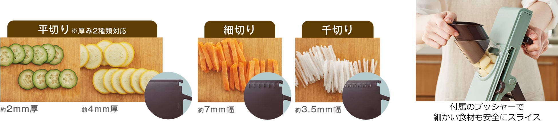 ~刃に触れにくい安心設計!平切り・細切り・千切りの3WAYで毎日のお料理に大活躍~
