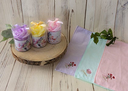 2. 各施設先着50名様にフラワー刺繍の入った今治タオルハンカチをプレゼント