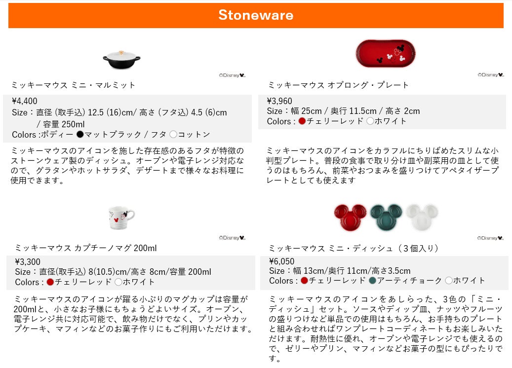 ホリデーシーズンの食卓はミッキーマウスと一緒に。ル・クルーゼ 「ミッキーマウス コレクション」2022秋冬発売のお知らせ