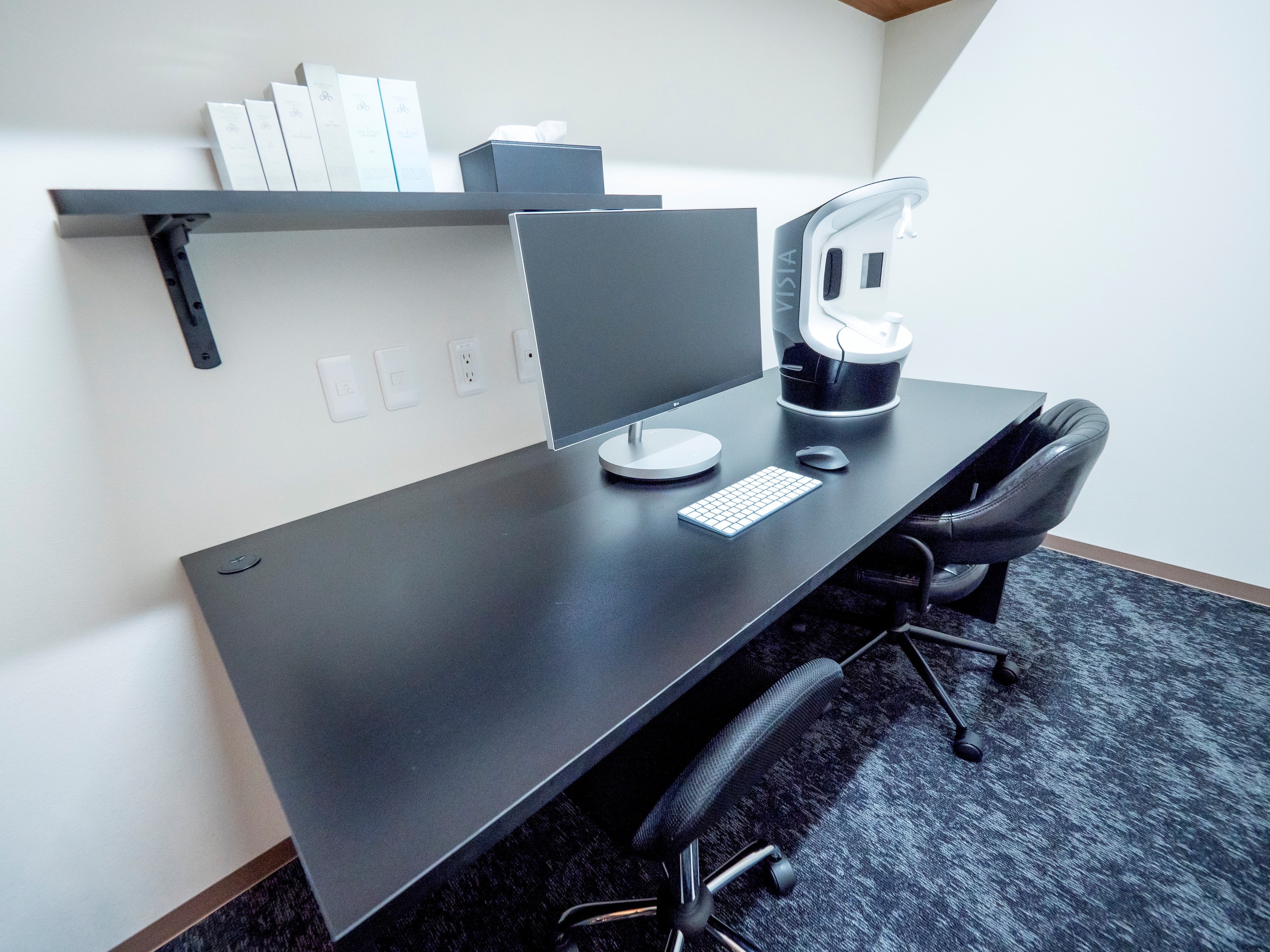 本機は画像解析システムを搭載した最新鋭の肌解析マシン。隠れたシミ・キメ・毛穴の状態などを撮影・解析し、肌年齢や未来の肌の状態をシミュレーションし可視化することで日常生活での改善策の指標として活用いただけるので、来院される男性ほぼすべての方がこの肌診断を受けられています。