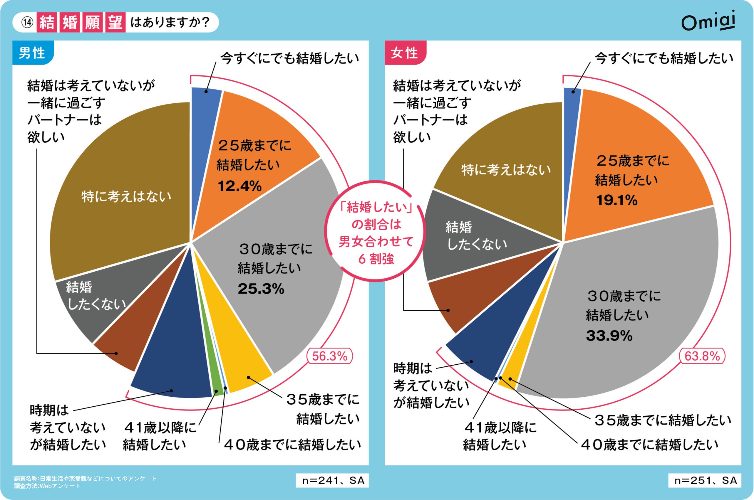 - 6割が結婚願望あり。早く結婚したい人は出産を意識。30歳以降に結婚したい人は金銭面を重視
