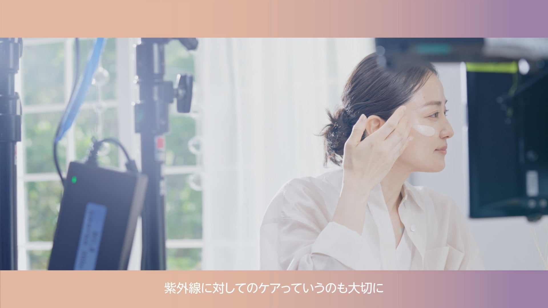 今回のWEB-CMでは、年齢を意識する世代の敏感肌にとって重要な「UV対策」と「シワ改善」の両機能を1本に備えた「デイクリームUV」の“よくばり感”が伝わるような内容となっています。紫外線対策・シワ改善でシワ・乾燥くすみ*が気になりやすい敏感肌の日々のケアを少しでも心地よく、楽しんでいただけるように願いを込めて制作しました。