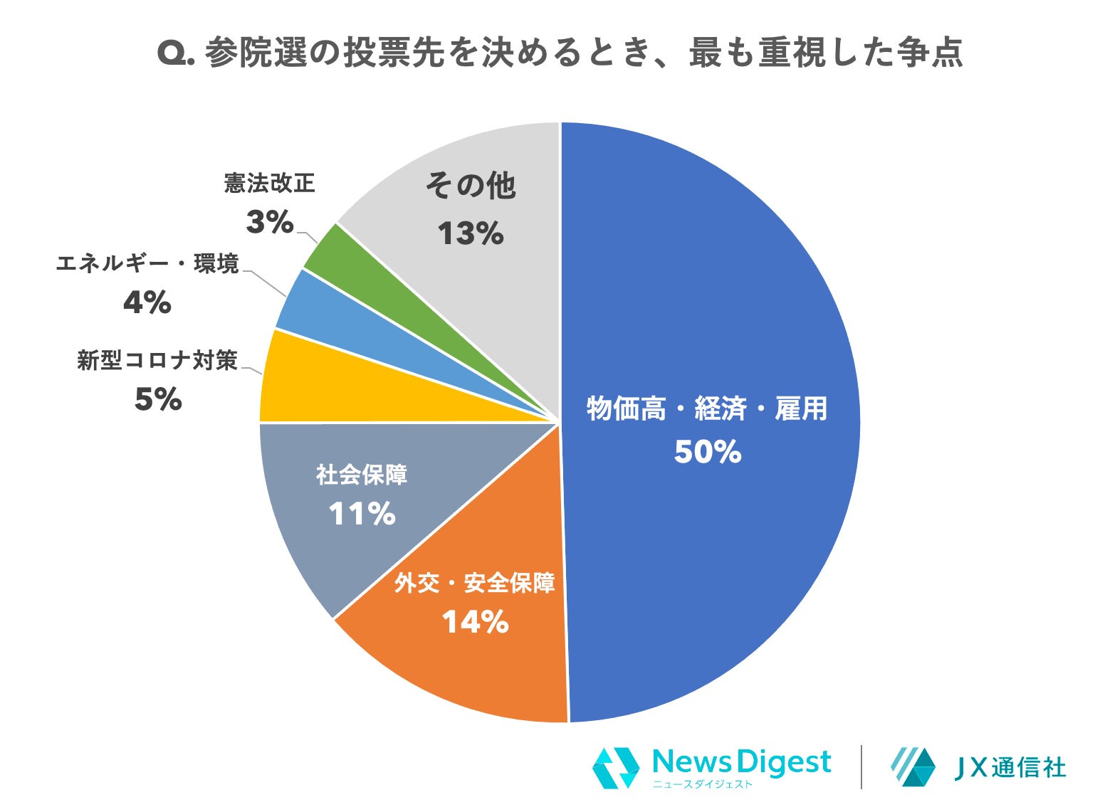 その結果、回答者のうち約5割が、投票にあたって最も重視した争点として「物価高・経済・雇用」を挙げたことが分かりました。