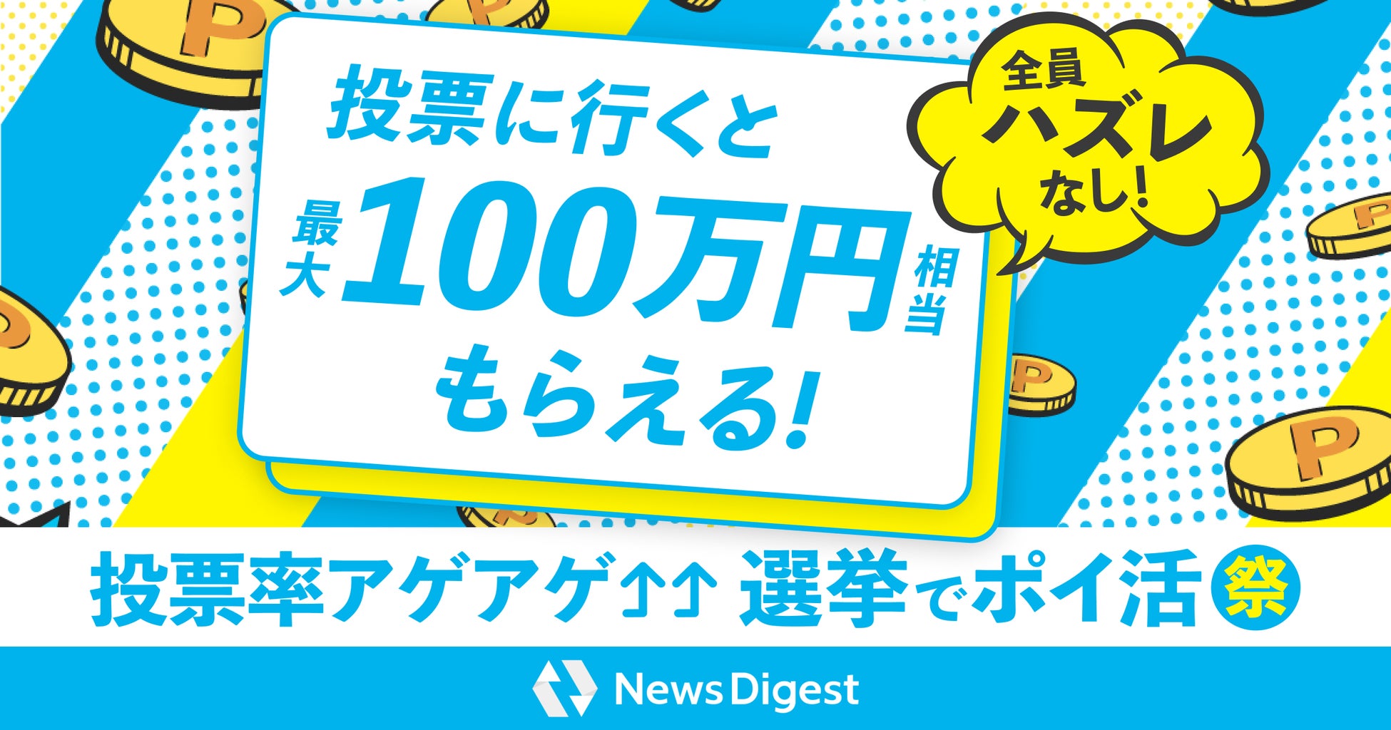 ◎投票に行くと最大100万円もらえる!NewsDigestアプリ調査企画