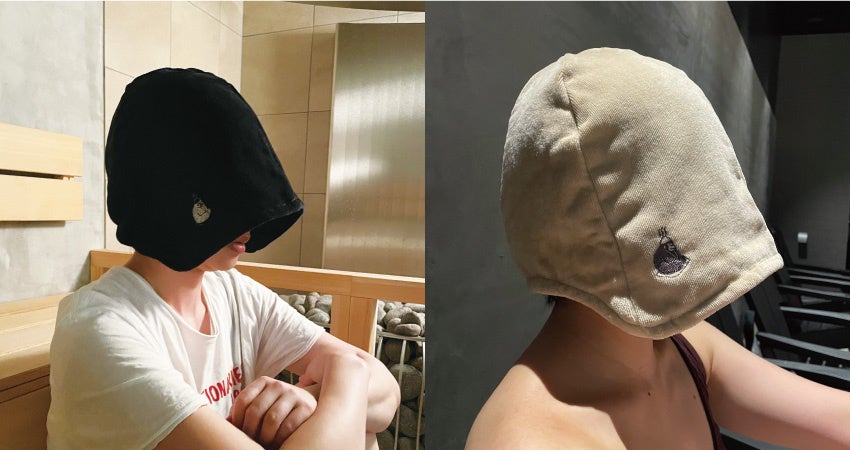 通常のサウナハットよりも一回り大きく作られているので、顔がすっぽり隠れる仕様。