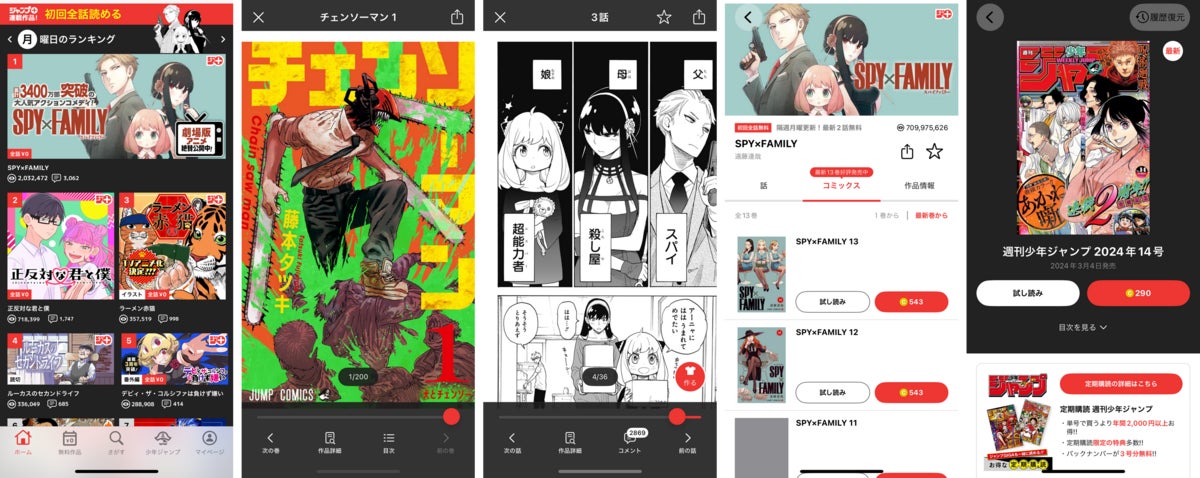 「少年ジャンプ+」は、集英社の「少年ジャンプ+編集部」が運営するマンガサービスです。ブラウザ版とアプリ版で展開しており、アプリ版の累計ダウンロード数は2,700万を超えています。『SPY×FAMILY』をはじめ、『怪獣8号』『チェンソーマン』『ダンダダン』など、70作品以上のオリジナル作品を初回全話無料で楽しむことができます。