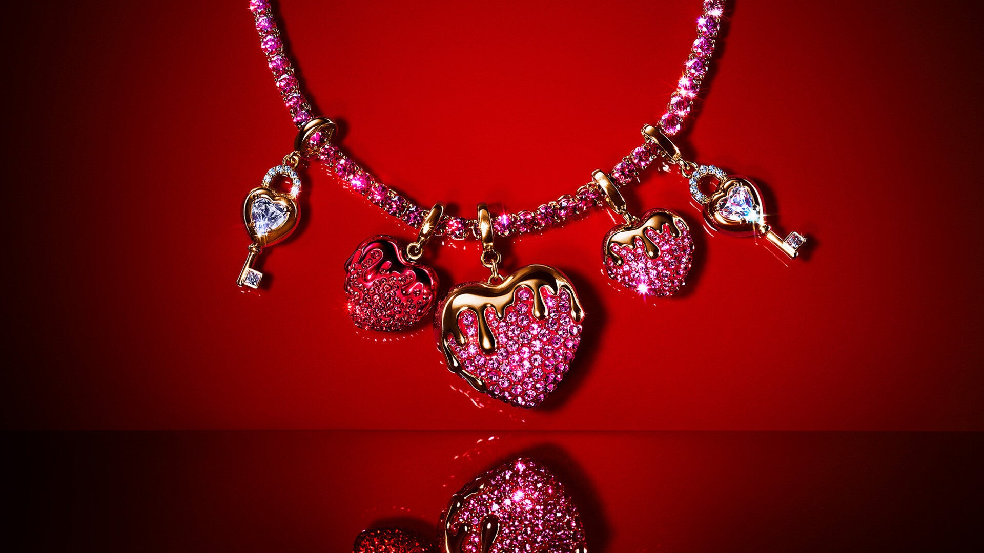 Swarovskiクリエイティブディレクター、ジョバンナ・エンゲルバートによってデザインされたバレンタインコレクションは、喜びあふれる愛の表現を叶える、プレイフルなスタイリングを提案。単体で楽しめるチャームから、チャームキャリアまで幅広く展開し、両面仕様や取り外し可能なエレメントを備えたデザインも揃います。