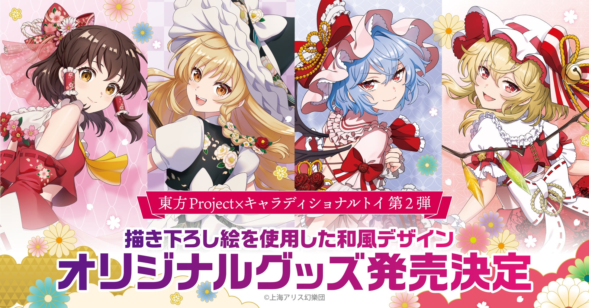 株式会社トキオ・ゲッツが展開する「キャラクター×日本の伝統」をテーマにしたブランド「キャラディショナルトイ」より、昨年発売した“見返り美人”をイメージした博麗霊夢・霧雨魔理沙に引き続き、スカーレット姉妹のレミリア・フランドール2名の新規描き下ろしイラストを加えて、「東方Project」新商品が登場します。