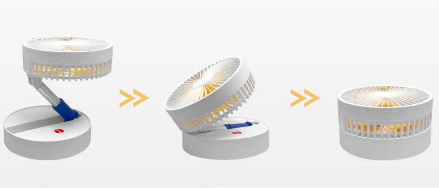 - 積載・収納のしやすさからたどり着いた円柱型 折りたたみ扇風機