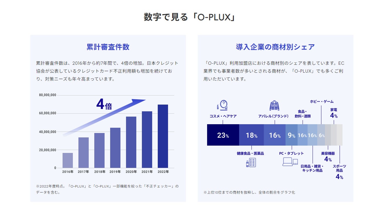 「数字で見るかっこ」は、2部構成になっており、前半では、組織・人材・働き方に焦点を当て、ワークスタイルやキャリアアップに関する情報をまとめています。後半では、主力サービスである不正注文検知サービス「O-PLUX」のデータを基に不正対策を実施している企業の商材や年商規模の分布、さらには2022年度の不正注文最高額と最低額についても公開しています。